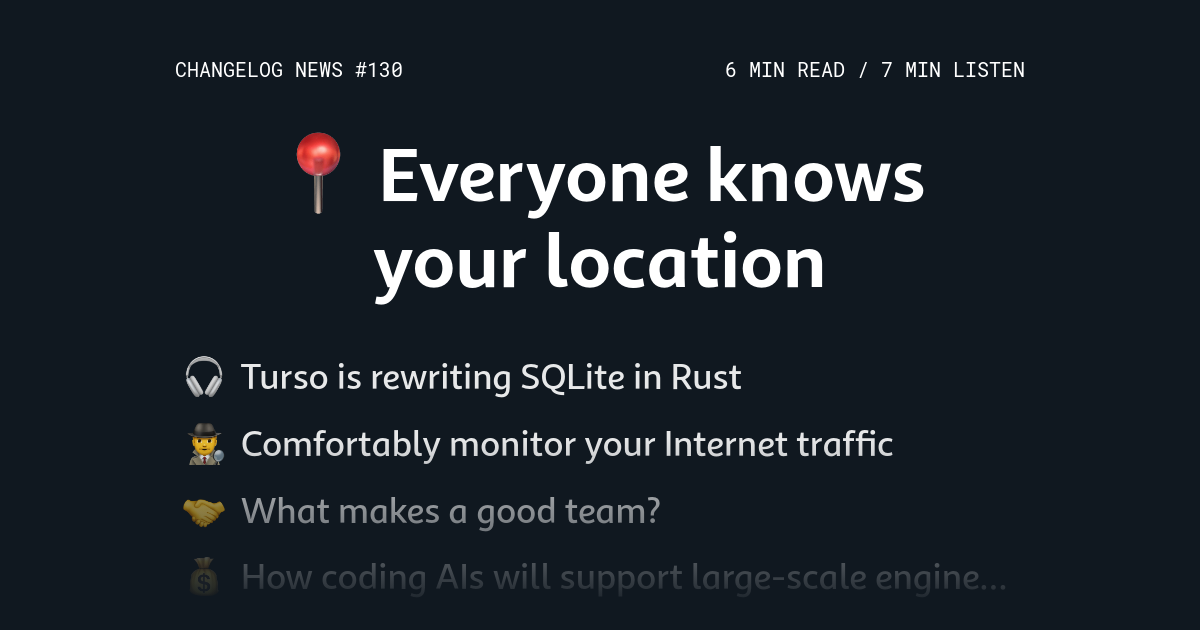 Tim Sh tracked himself down through in-app ads, Sniffnet comfortably monitors your Internet traffic, Cate Huston opines on what makes a good team, Victor Shepelev draws on 25 years of coding to share