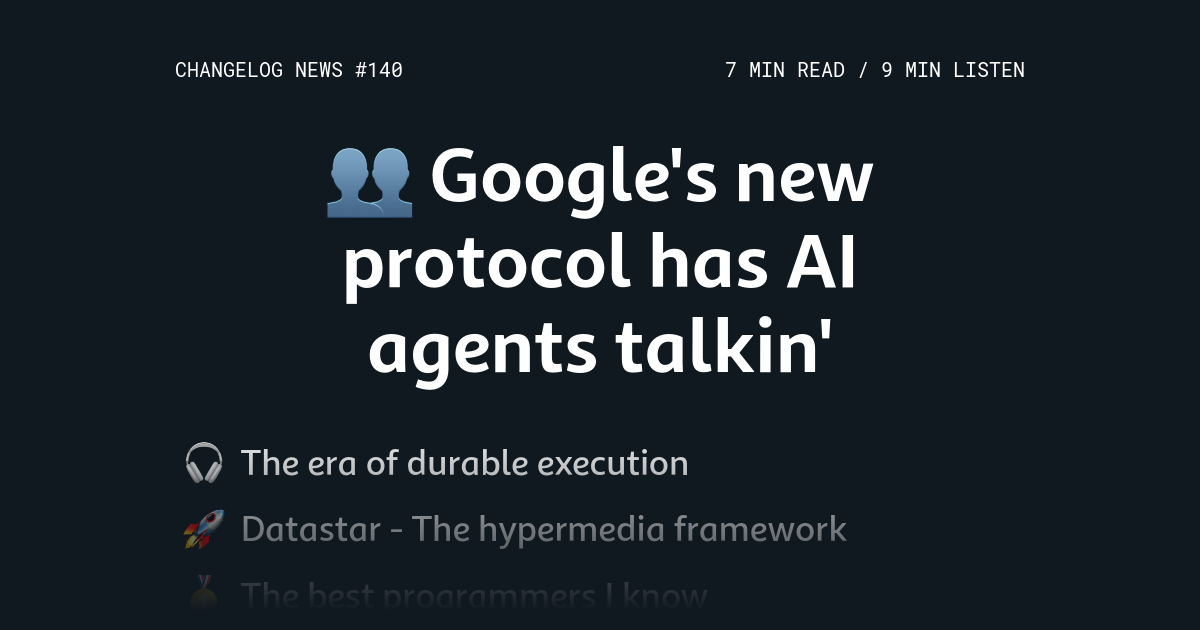 Google's new protocol has AI agents talkin' (Changelog News #140)