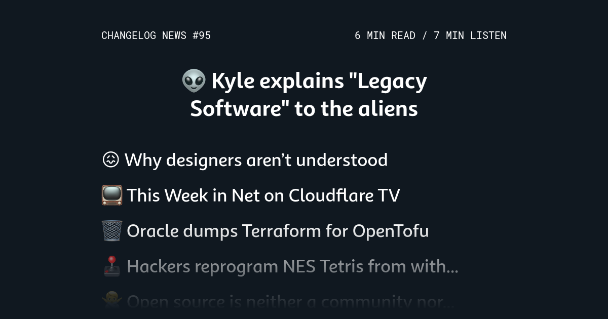 Kyle explains "Legacy Software" to the aliens (Changelog News #95)