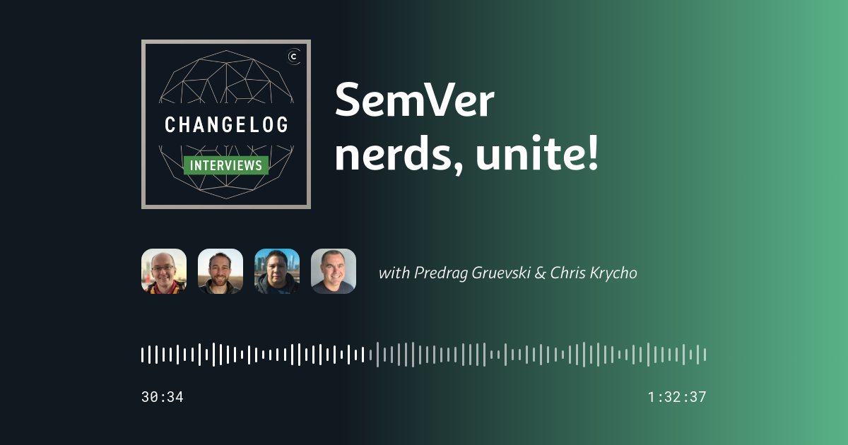 Predrag Gruevski and Chris Krycho joined the show to talk about SemVer. We explore the challenges and the advantages of semantic versioning (aka SemVer), the need for improving the tooling around SemV