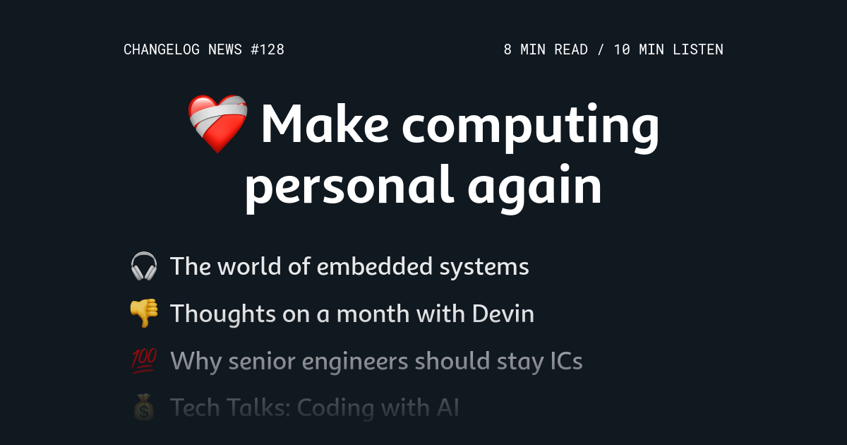 Benj Edwards wants to put the "personal" back in "personal computer", the answer.ai folks took Devin for a month-long spin, Asaf Zamir explains why senior engineers can remain ICs and still have a ful