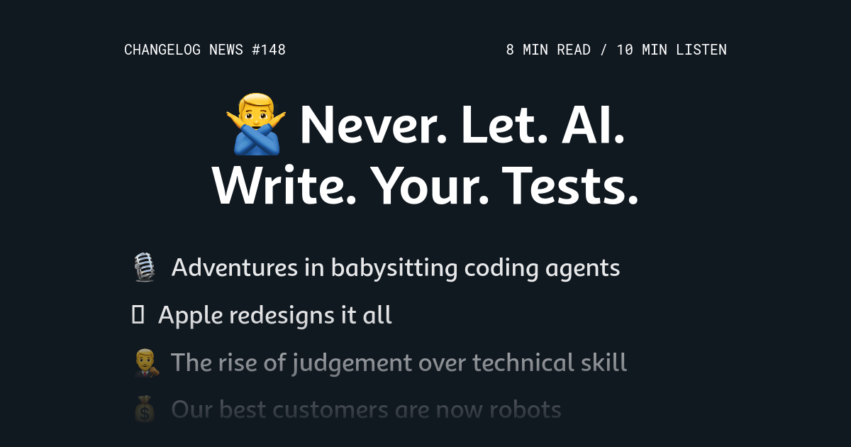 Never. Let. AI. Write. Your. Tests. (Changelog News #148)