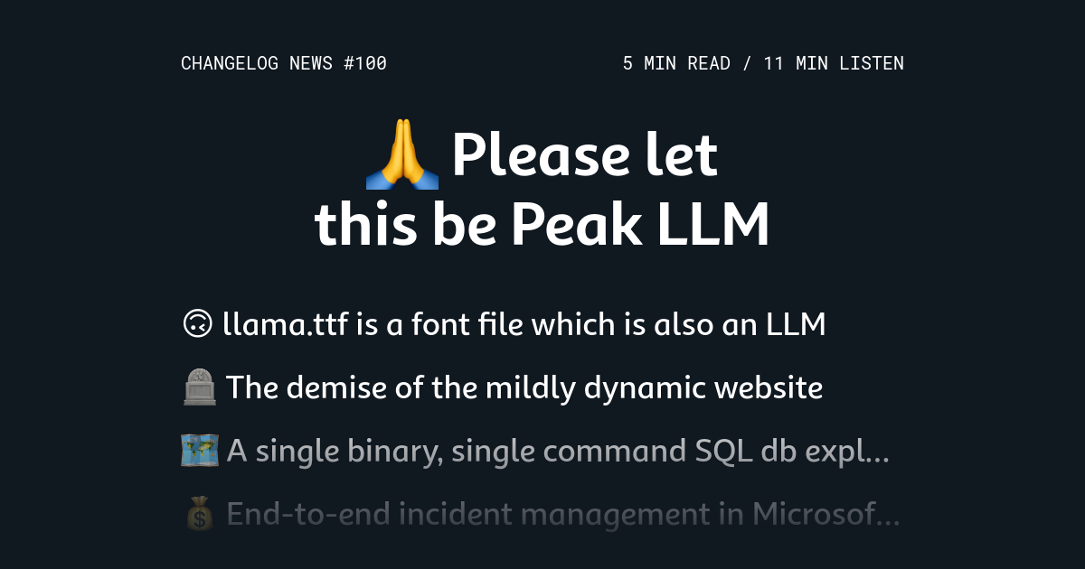 Søren Fuglede Jørgensen builds a font thats also an LLM, Hugo Landau writes about the demise of the mildly dynamic website, SQL Studio is the simplest little database explorer ever, Mathew Duggan revi