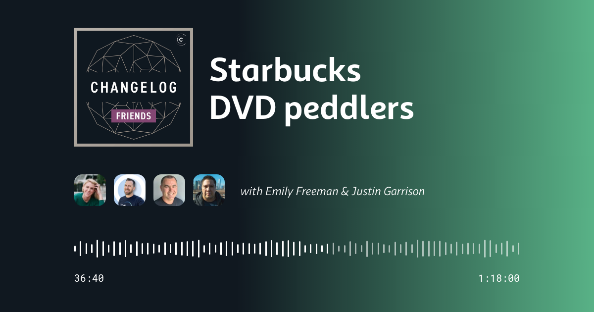 Starbucks DVD peddlers with Emily Freeman & Justin Garrison (Changelog & Friends #60)