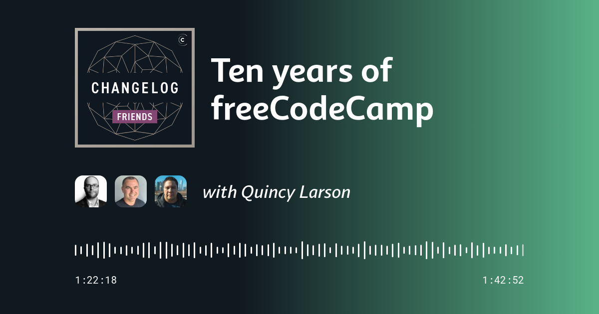Ten years of freeCodeCamp with Quincy Larson (Changelog & Friends #67)