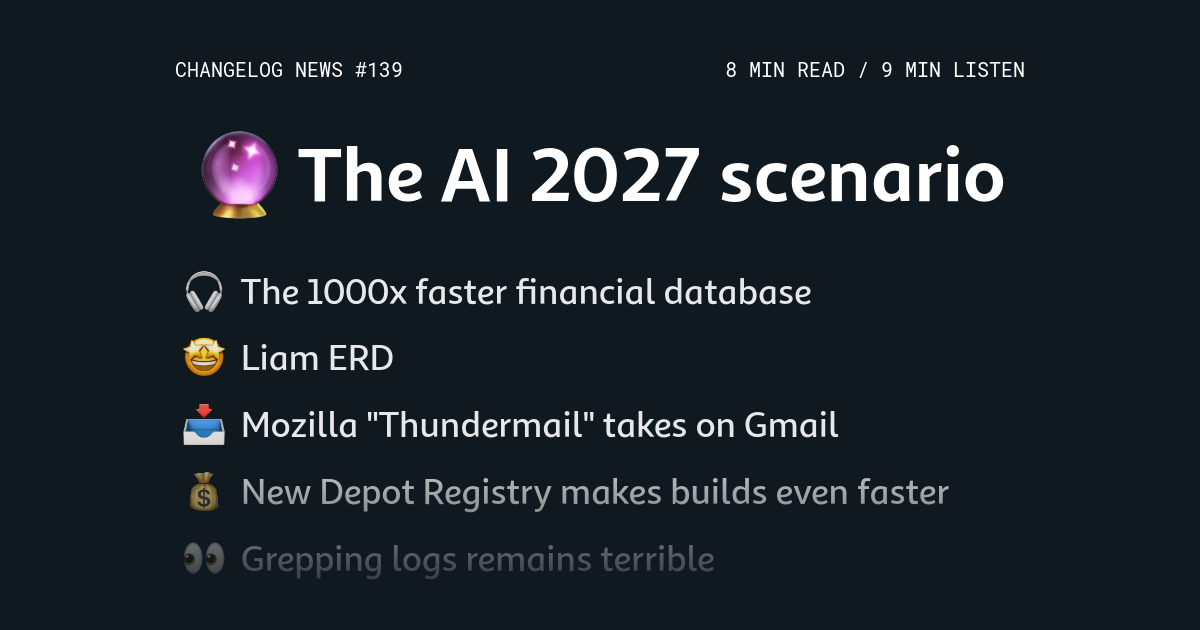 Daniel Kokotajlo and the AI Futures Project lays out a potential scenario of superhuman AI's impact, Liam ERD generates beautiful, interactive ER diagrams from your database, Mozilla takes on Gmail wi