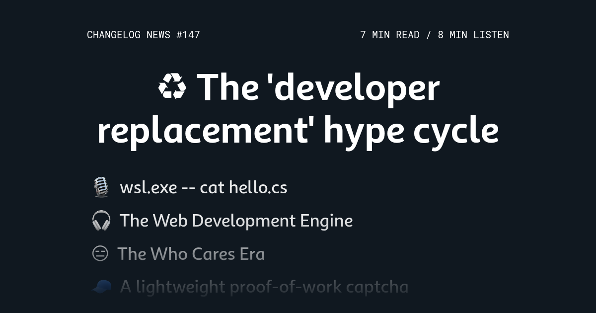 We're doing a live show in Denver this July, Danilo Alonso has seen the 'developer replacement' hype cycle many times, Dan Sinker says we're in the Who Cares Era, Cap looks like a solid alternative to