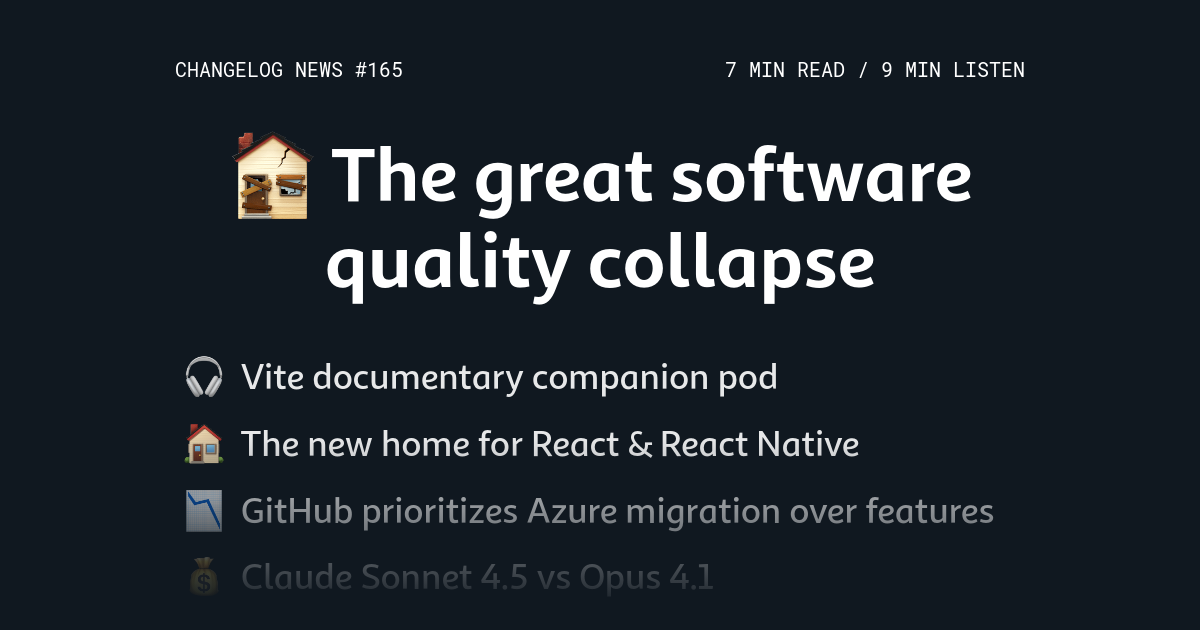 Denis Stetskov describes how we've "normalized catastrophe" in the software industry, Meta is officially handing React and React Native over to a foundation, The New Stack reports on GitHub's Azure mi